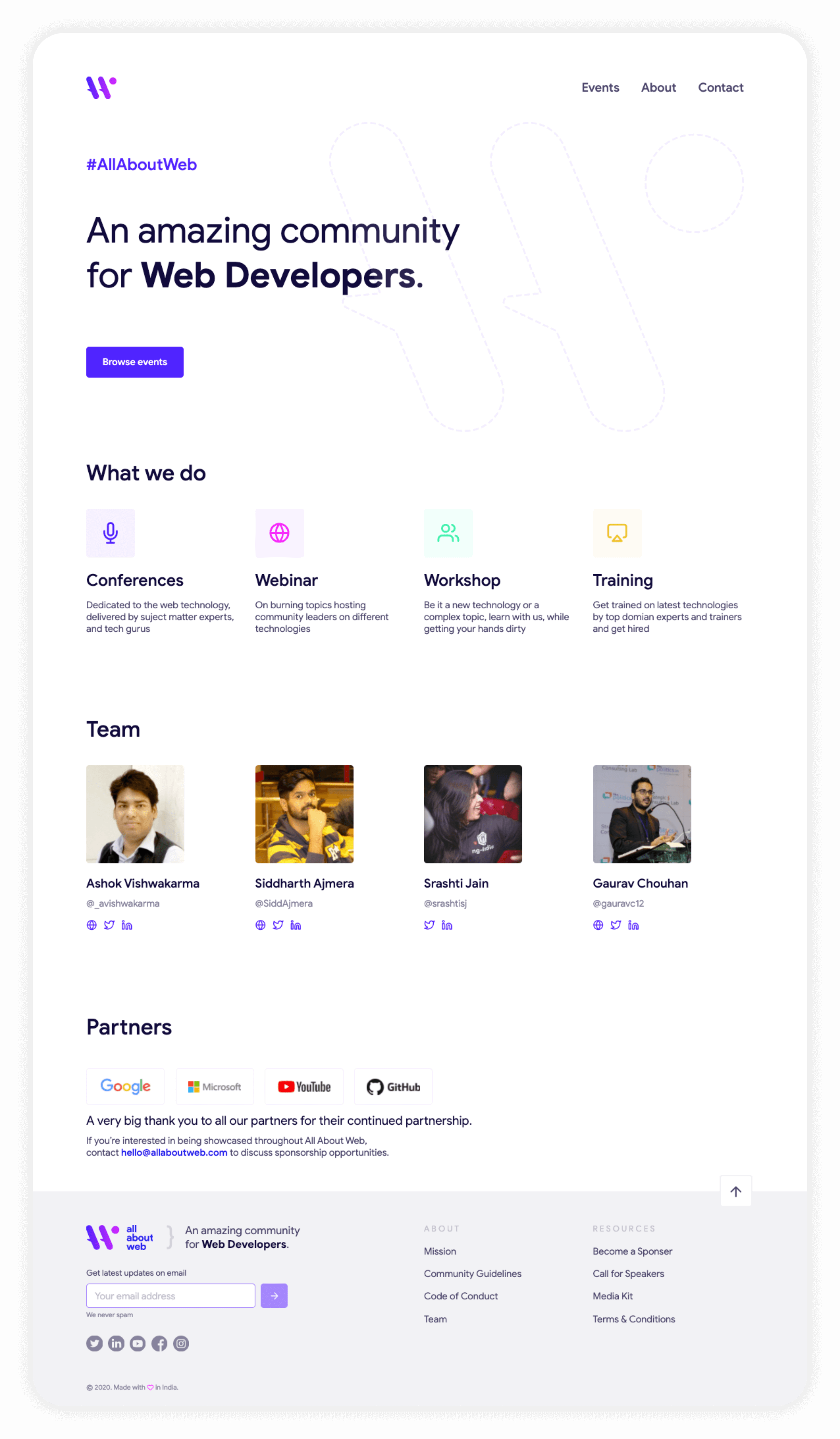 4 people on a mission to create an amazingly vibrant community of web developers around the world where everyone feels welcome and empowered with a primary focus to cater to web technologies.
